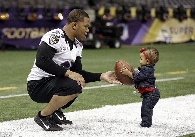 3. Ray Rice and his daughter Rayven on the field before the game. I mean, really. Image
